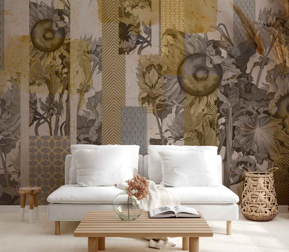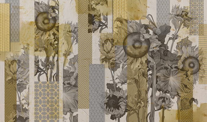 Home Wallpaper Tropical and Animal Flowers Concrete Vintage Yellow Flowers
