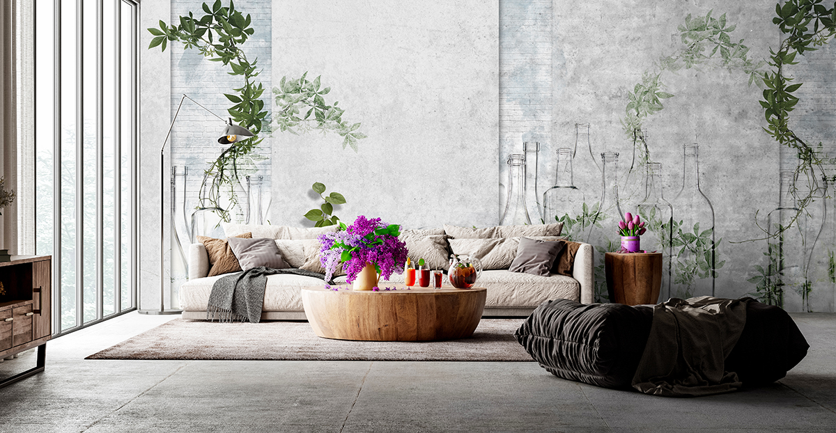 Home Wallpaper Tropical and Animal Leaves Plant Bottels