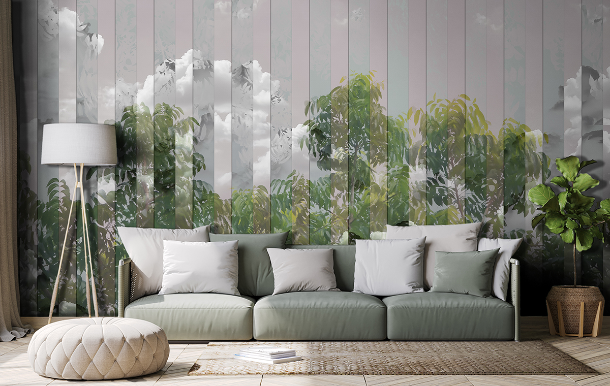 Home Wallpaper Tropical and Animal Leaves stripes with Cloudy Tropical